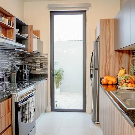 Villa Beautiful House In Playa Del Carmen dispose d'une cuisine complète dotée de micro-ondes, d'une cafétière/théière électrique et d'un réfrigérateur. - ❓
